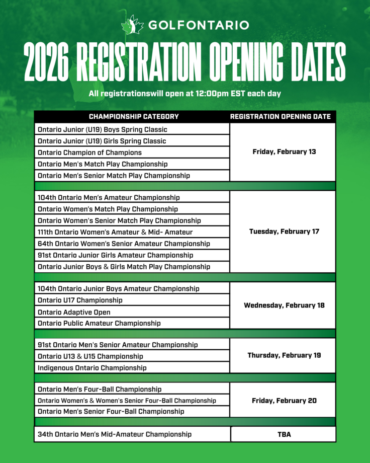 For more information about the 2026 Golf Ontario Championship Schedule, please email tournaments@golfontario.ca