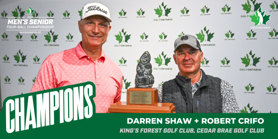 Gormley, ON – Last year’s Senior Men’s Match Play Champion Darren Shaw (King’s Forest Golf Club), alongside Robert Crifo (Cedar Brae Golf Club), captured the top spot at the 2025 Ontario Men’s Senior Four-Ball Championship with an impressive score of 64, finishing seven-under-par. The duo delivered a strong performance, carding eight birdies throughout the round. Their consistent play and effective teamwork kept them ahead of the field, securing a well-earned victory.